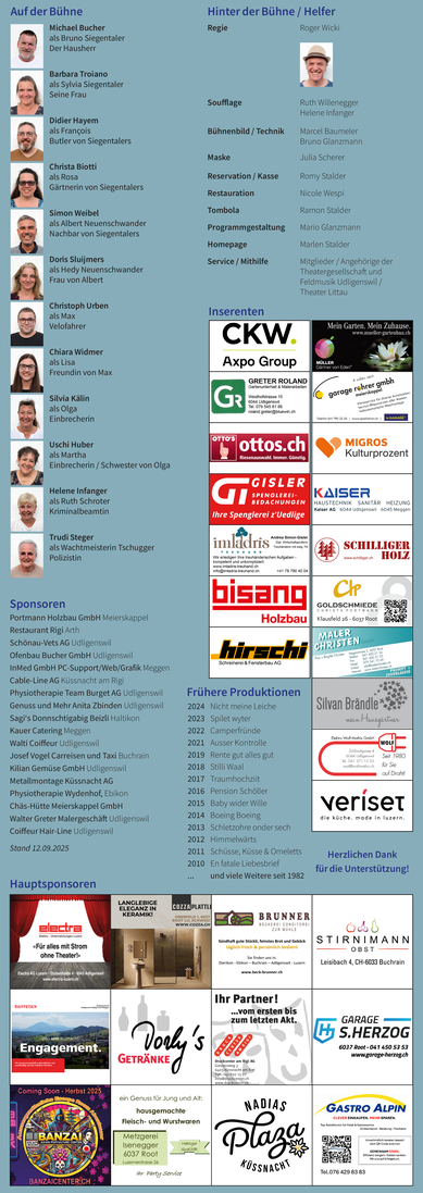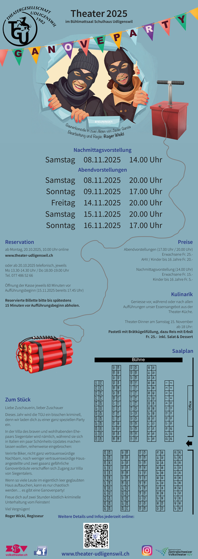Willkommen bei der Theatergesellschaft Udligenswil. Humor ist die beste Medizin. Und mit diesem Lebenselexier begeistert die TGU seit 1982 das Publikum.